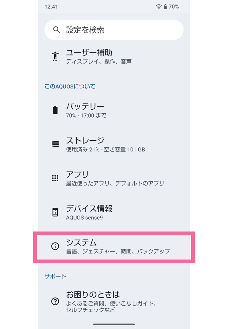 デバイス情報より、このAQUOSスマホの機種名は「AQUOS sense9」だと分かりました。