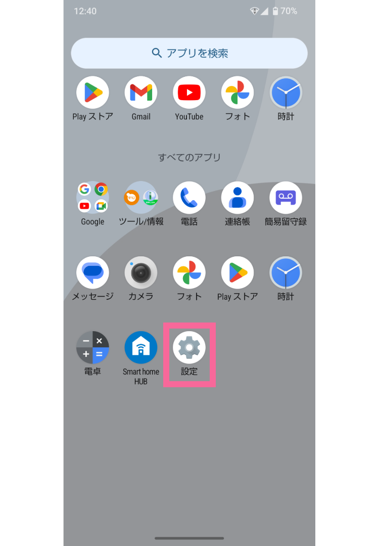 続いて、Googleアカウントからログアウトしつつ、AQUOSスマホのデータを削除しましょう。