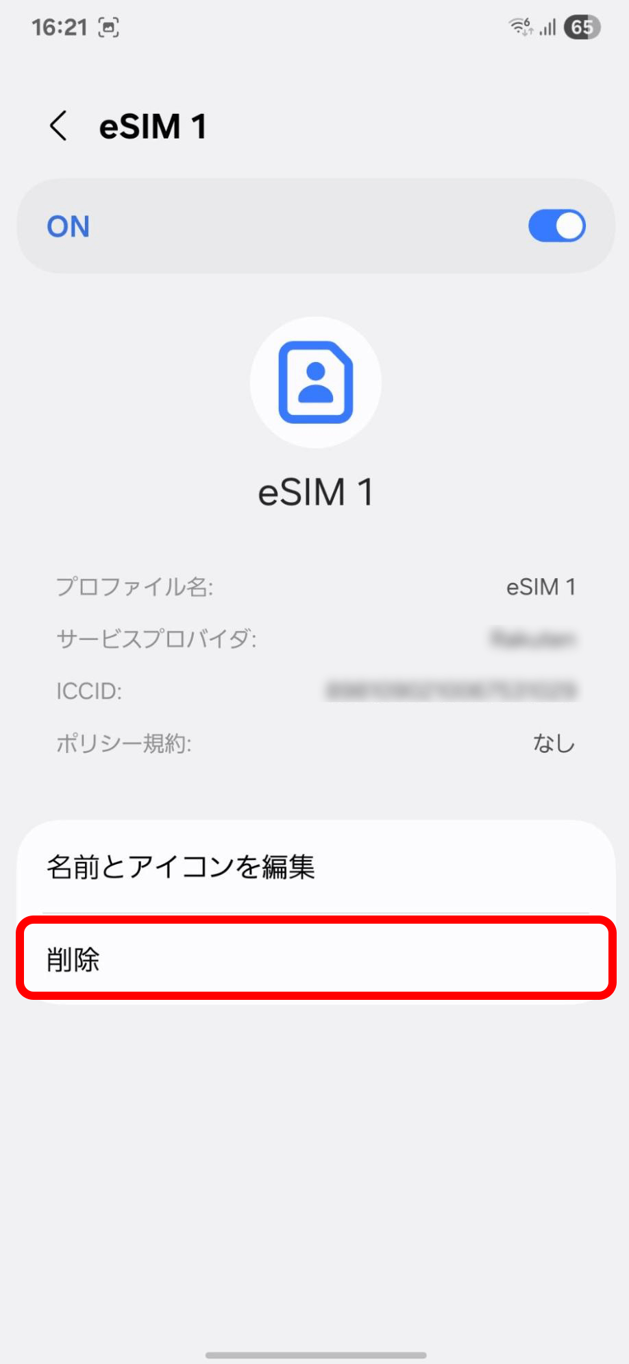 eSIM設定の削除