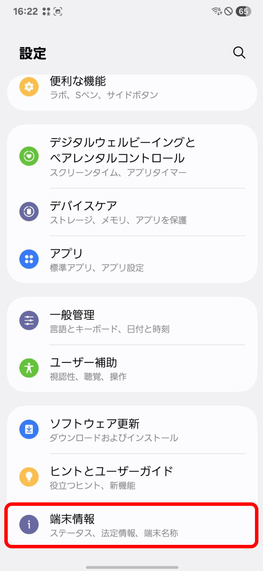 「設定」から「端末情報」をタップ