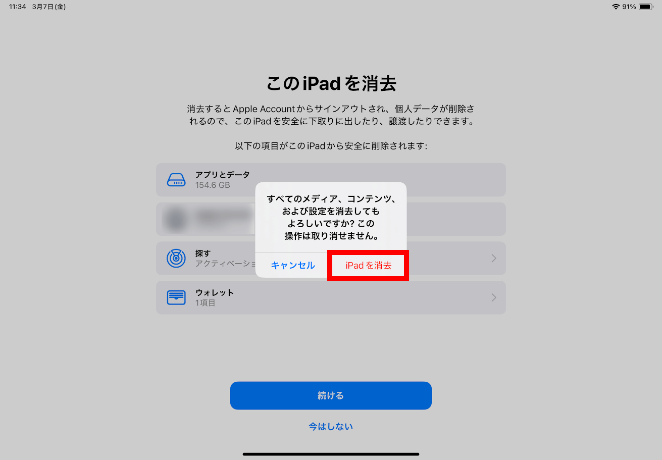 データのバックアップと機種情報の確認ができたら、iPadを初期化してしまっても問題ありません。