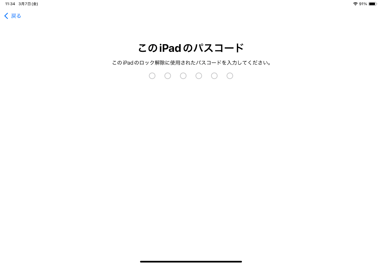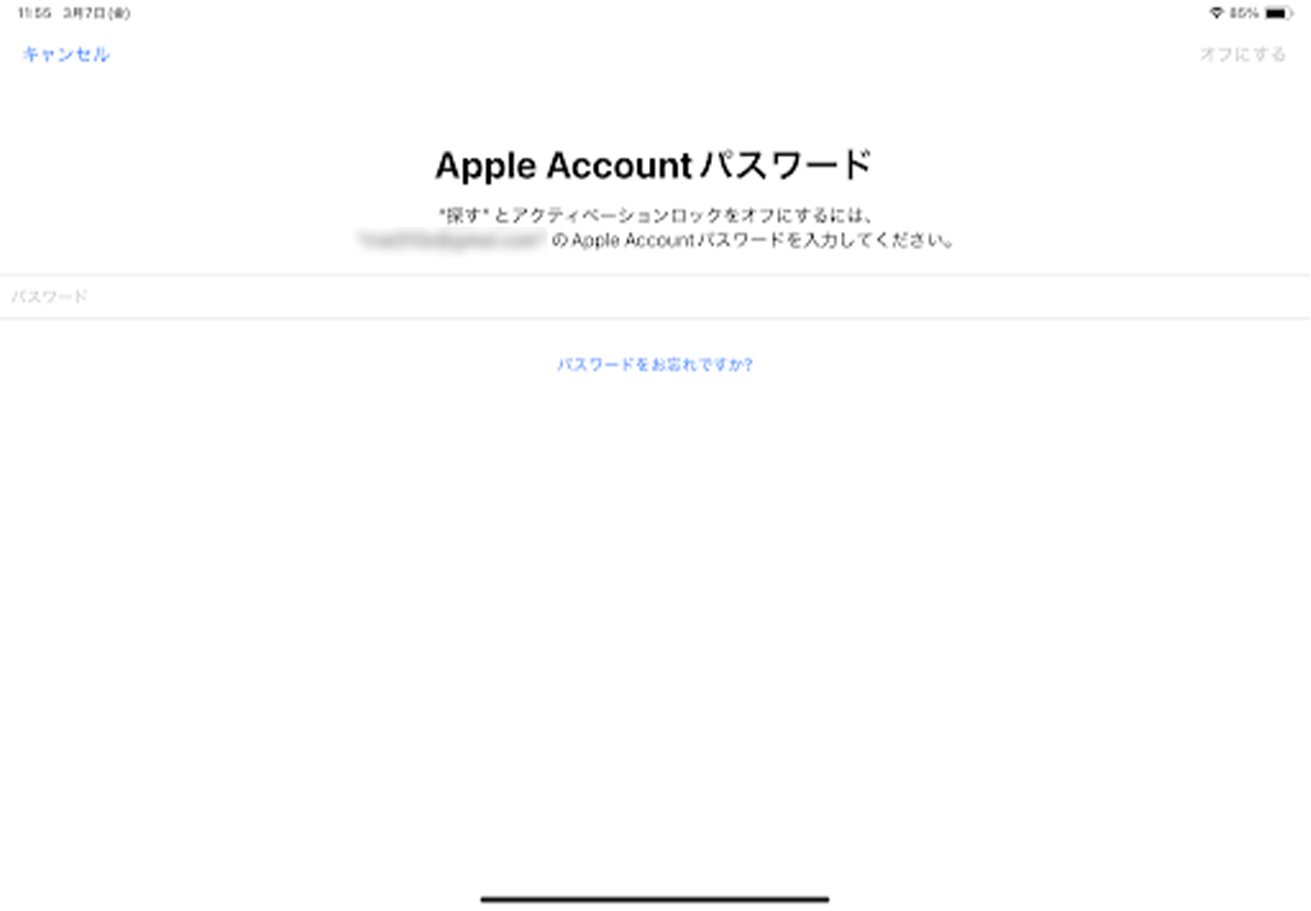iPad本体のパスコードが分からない場合は、「iPad初期化の方法 その②」をご確認ください。
