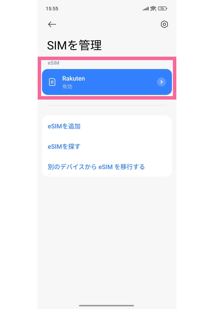 設定しているeSIMをタップ(画像だとRakuten)